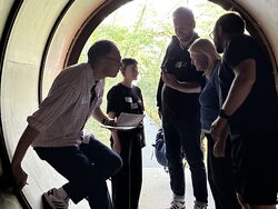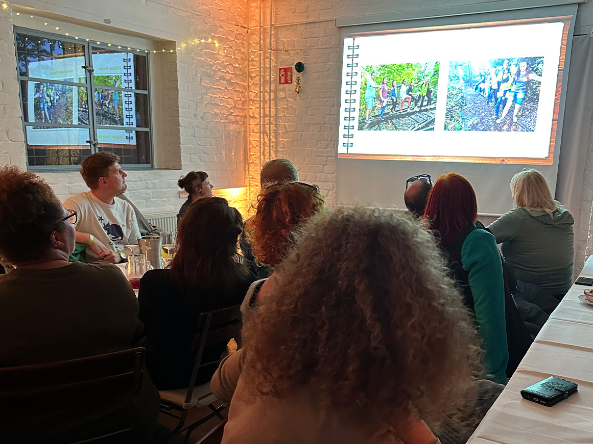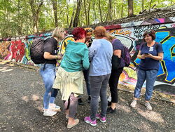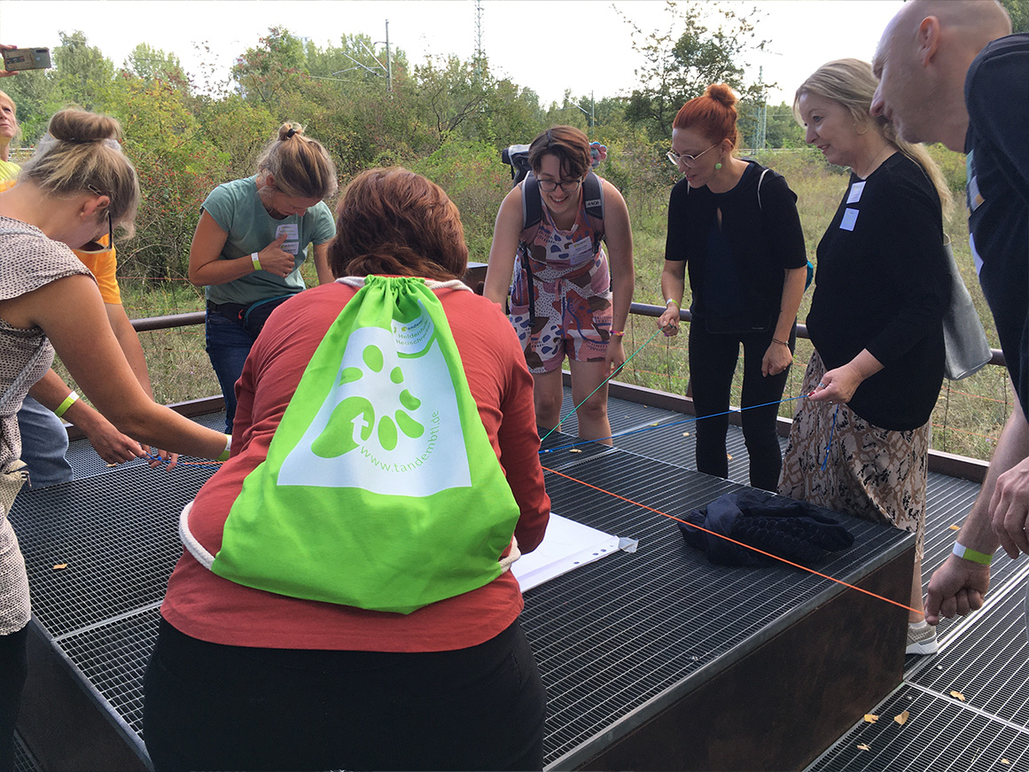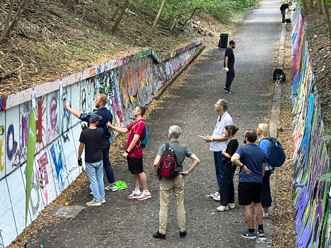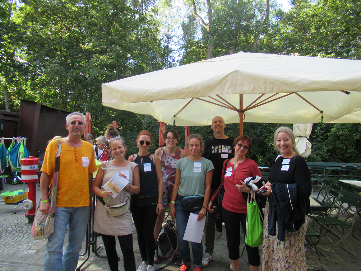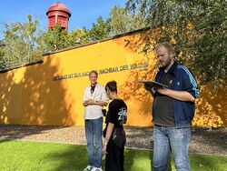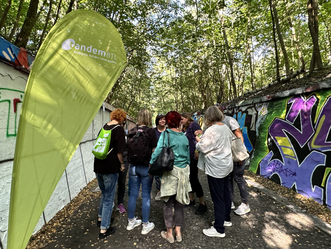 Rund 120 tandem-Mitarbeiter*innen fanden sich nachmittags ein, um bei schönstem frühherbstlichen Wetter nebenbei einen ganz besonderen Ort zu erkunden: Denn der Park befindet sich auf dem Gebiet des ehemaligen Rangierbahnhofs Tempelhof. Heute kann hier eine einzigartige Verbindung von alter Bahntechnik, wild gewachsener Natur sowie Kunst erlebt werden. Wer hier spazieren geht, findet zwischen Sträuchern und Bäumen alte Gleise, Wasserkräne, Lichtmasten, eine Dampflokomotive und eine der ältesten Drehscheiben Deutschlands.
